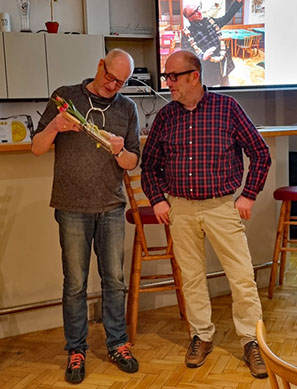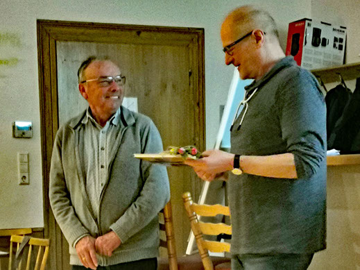 Übergabe eines Jahrbuchs an unseren "Elektriker" Alfons Lohr als Dank für herausragenden Einsatz bei der Erstellung unserer neuen Küche.