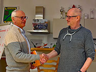 Mit einem kräftigen Händedruck wird die Verabschiedung mit der Hoffnung auf die bleibende Verbundenheit mit der Kegelbahn besiegelt.