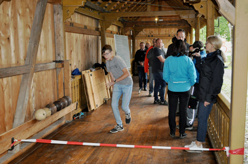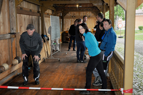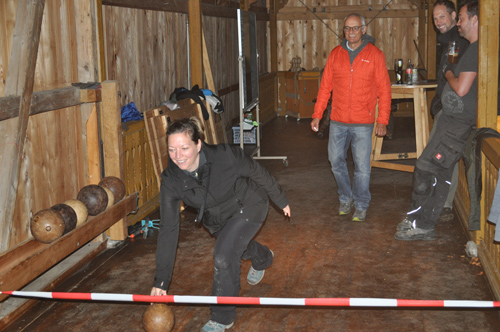 Wir öffnen mit unseren Helfern die Kegelbahn